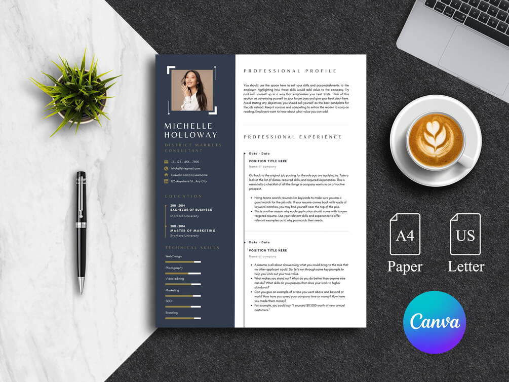 Canva Modern Resume Template for Canva, 1-3 Page Resume, Cover Letter & References Template, CV Template, Minimalist Resume